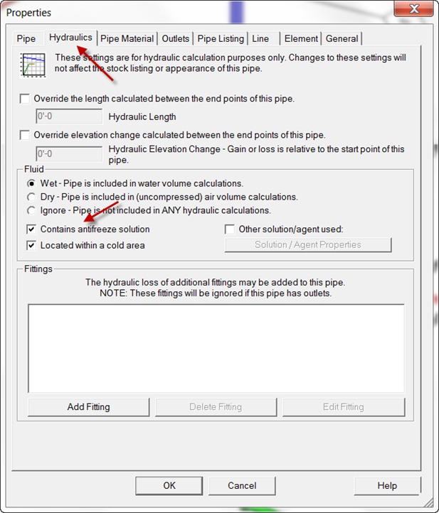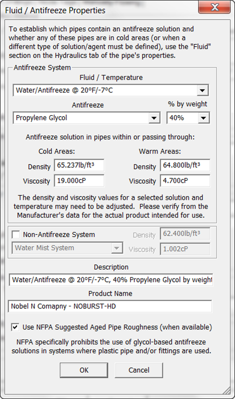 Once this Darcy-Weisbach option is selected: the properties of every pipe in the system, that will contain antifreeze, needs to be set to: